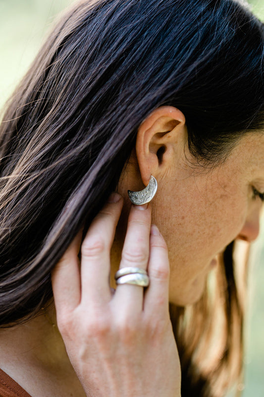 Cerridwen Hoops. Handcarved. Sterling Silver.