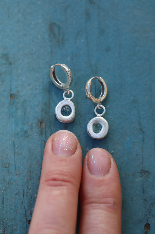 Sold outRaw Montana Sapphire Orb Hoops. Blue