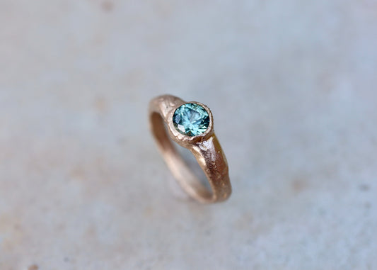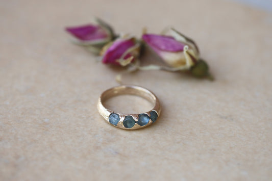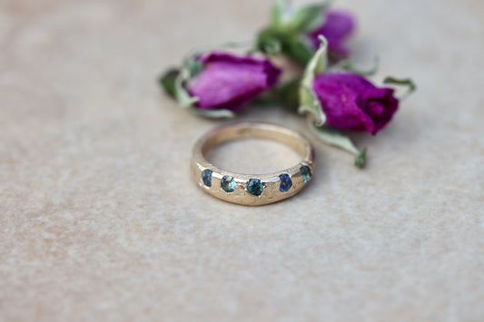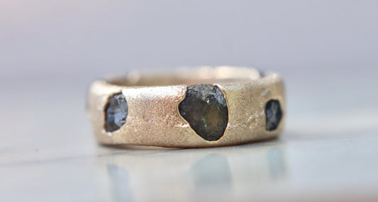 Raw Montana Sapphire Wide Gold Sandcast Band