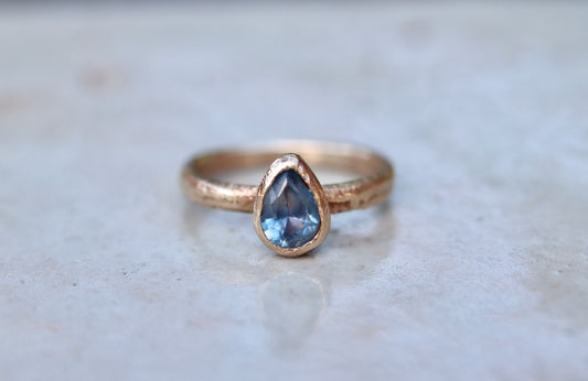 Anu Ring. Sky Blue Montana Sapphire Pear Solitaire