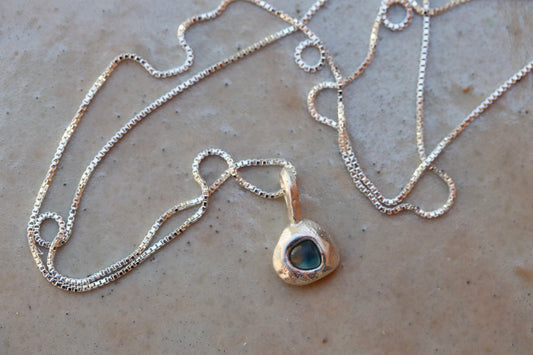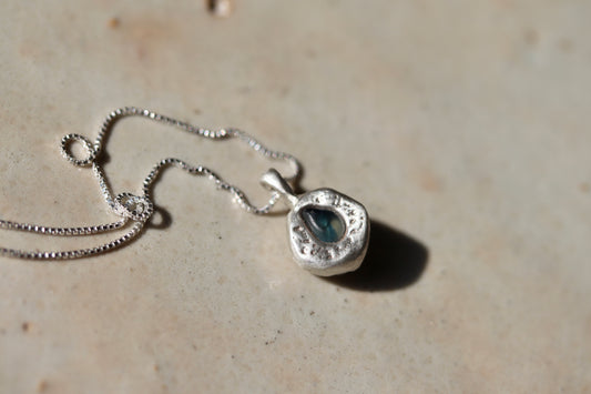 Raw Montana Sapphire Droplet Necklace No. 3