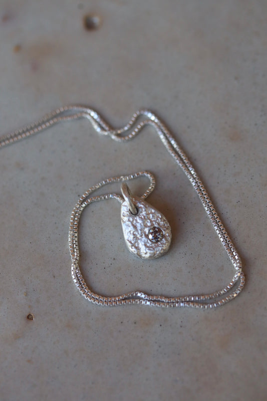 Wellspring Necklace. Organic Texture Sterling Silver + Diamond. No. 2