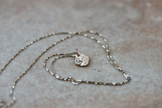 Wellspring Necklace. Organic Textured 14kt Gold + Diamond