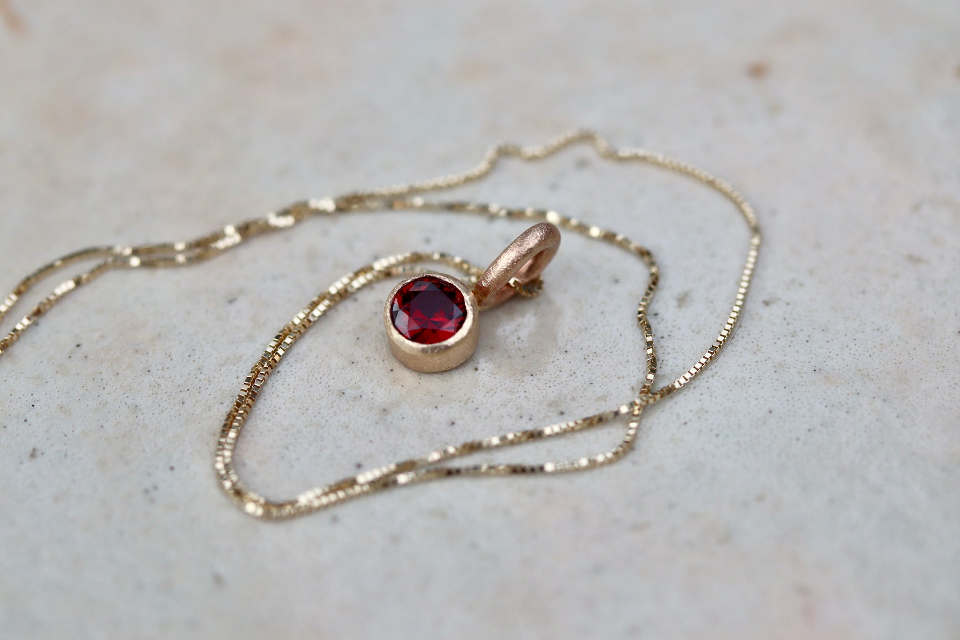 Beautifully simple deep red Idaho garnet set simply in organically textured 14kt Gold.