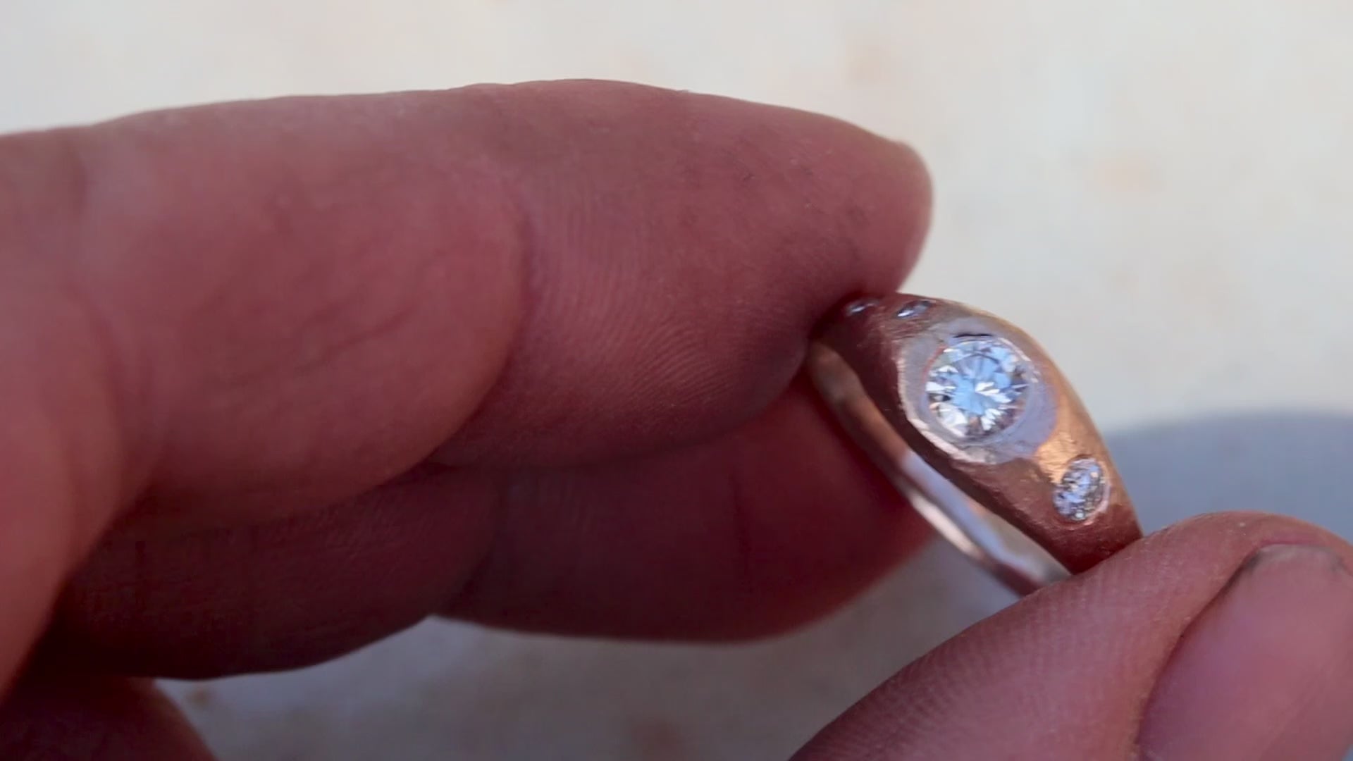 Stunning, earthen, unconventional low profile signet style engagement ring.